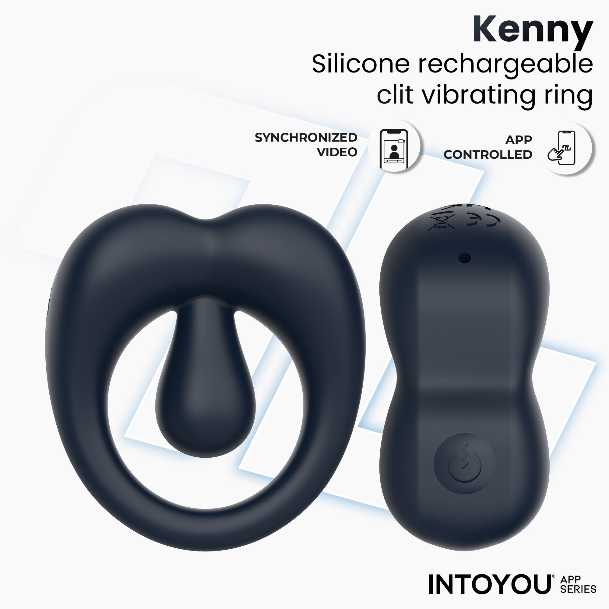 INTOYOU APP SERIES Kenny Anillo Vibrador con Estimulador de Clítoris y APP Azul Oscuro
